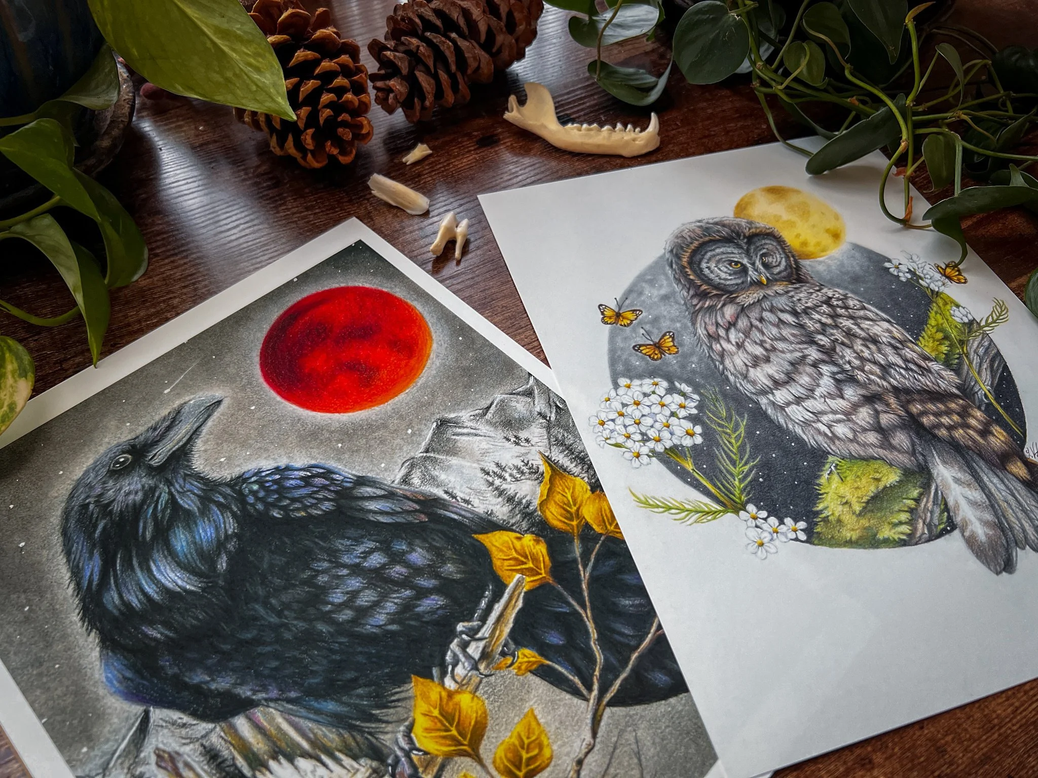 Each print I send out has passed through my hands—from the first pencil marks to the final trim. I print them here in my small studio using Canon Pro Premium Matte paper and high-quality pigment inks, wrapped and packed with care. Every piece is signed and packaged with intention.