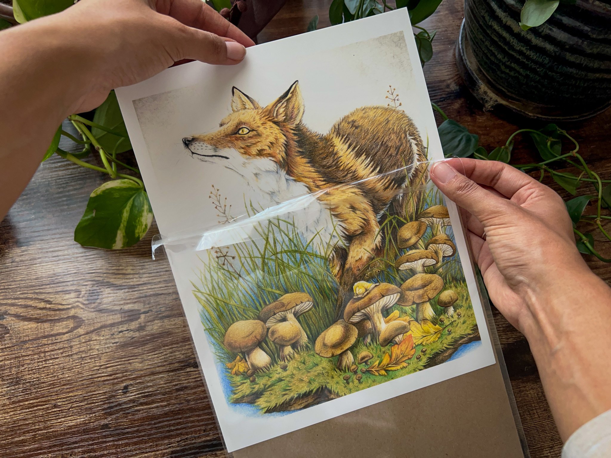 If you’re not framing your piece right away, the safest thing you can do is keep the print inside its original clear sleeve, with the acid-free backing board still in place. The packaging was designed to protect it—flat, dry, and sealed from dust or handling.